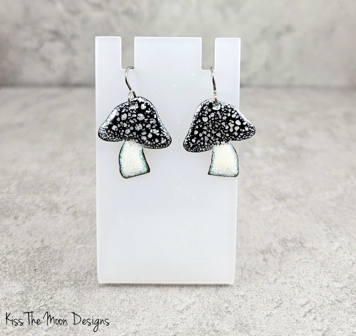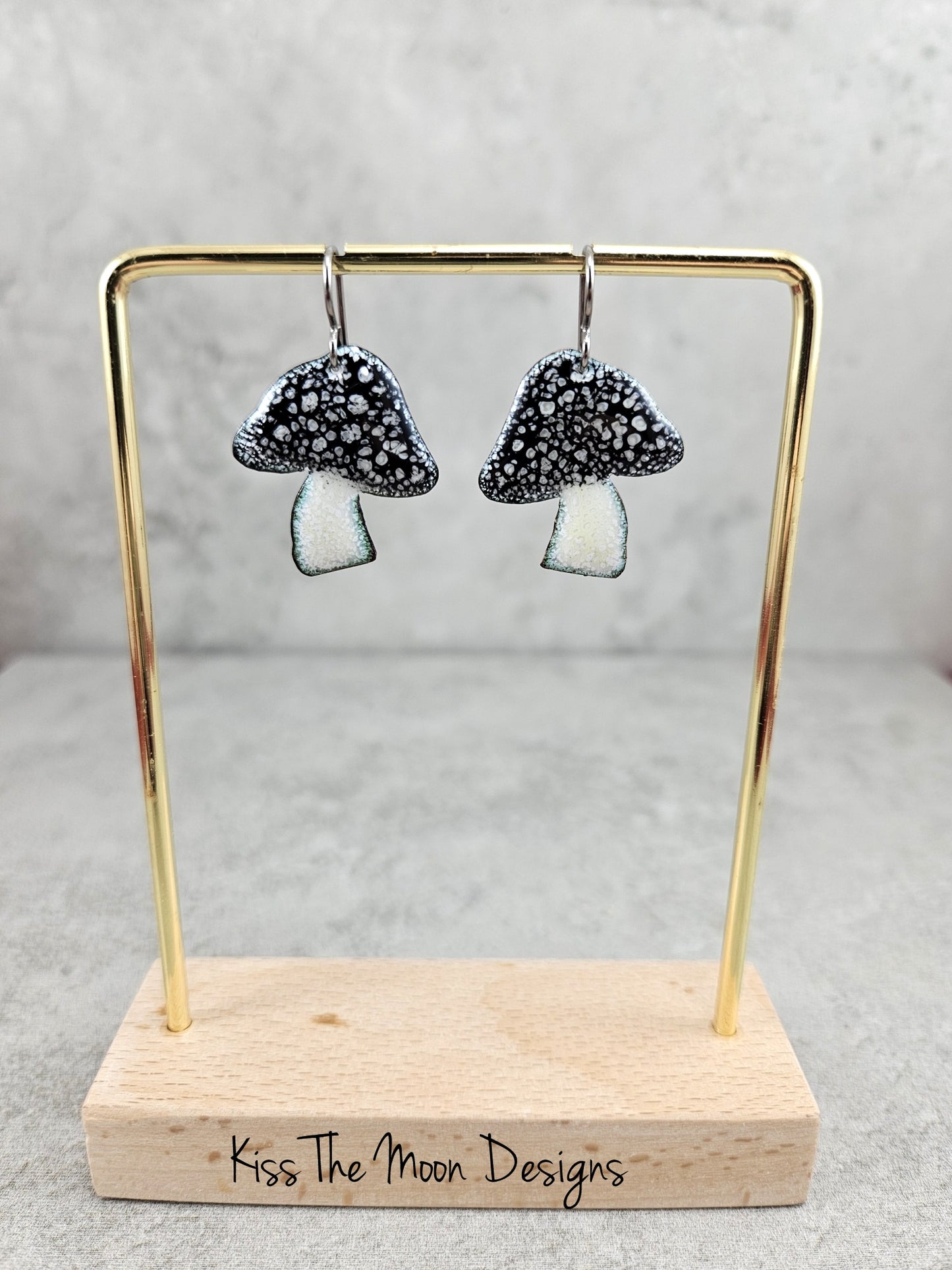 Elevate your accessory game with our exquisite Crackle Enamel Mushroom Earrings. Crafted through a meticulous process of fusing powdered glass to copper, these earrings encapsulate a unique artistic flair that sets them apart from the ordinary.