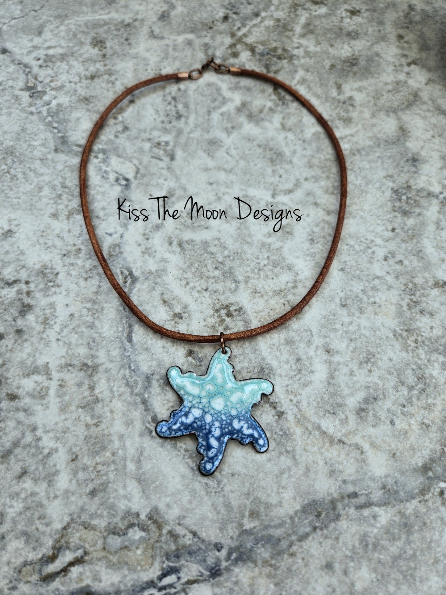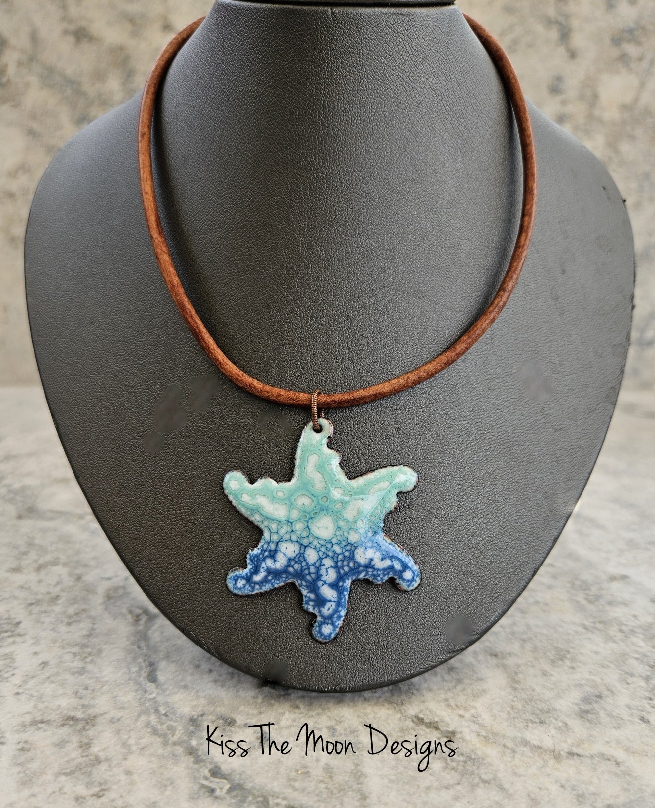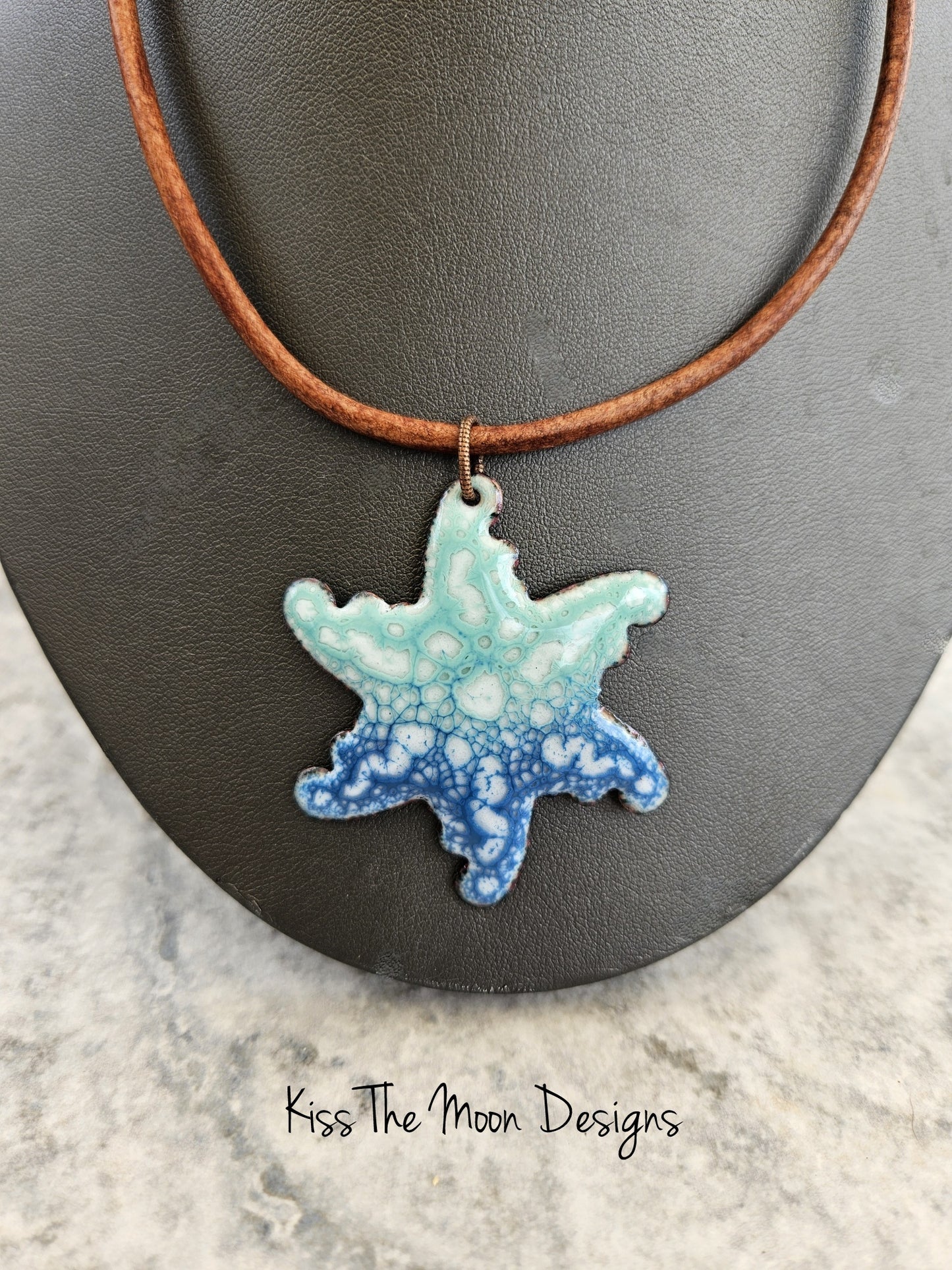 Crackle Enameled Starfish Necklace- Blue, Green and White