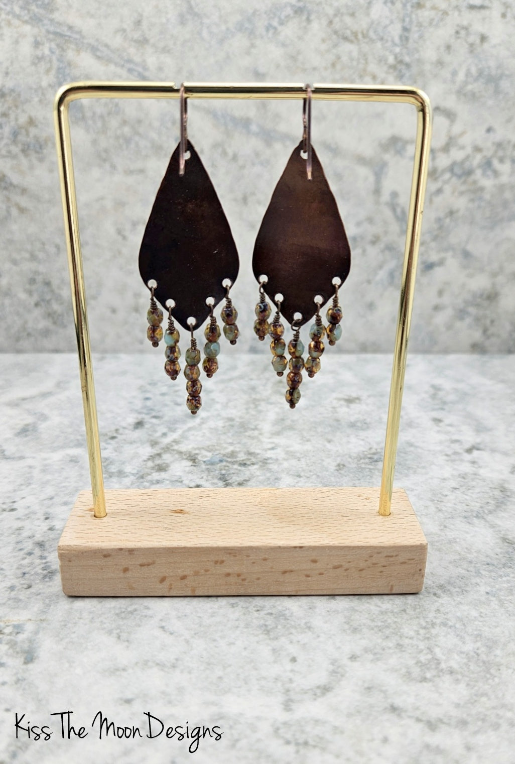- Materials: Recycled copper components; hypoallergenic niobium earwires; Czech glass beads