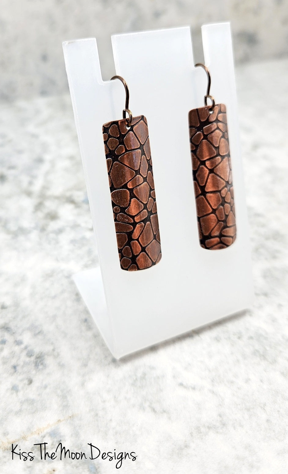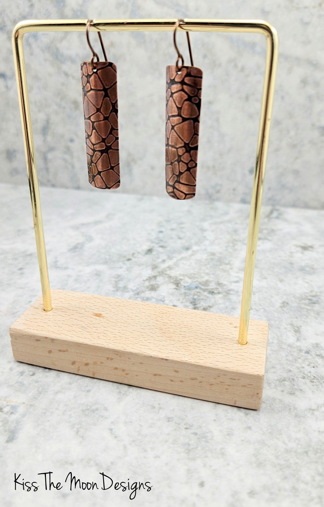 Discover the Tortoise Shell Copper Rectangle Earrings — a chic fusion of vintage tortoise shell pattern and modern geometric style. Crafted in copper with a warm, mottled tortoise shell motif, these rectangular earrings bring a touch of timeless elegance to any outfit.